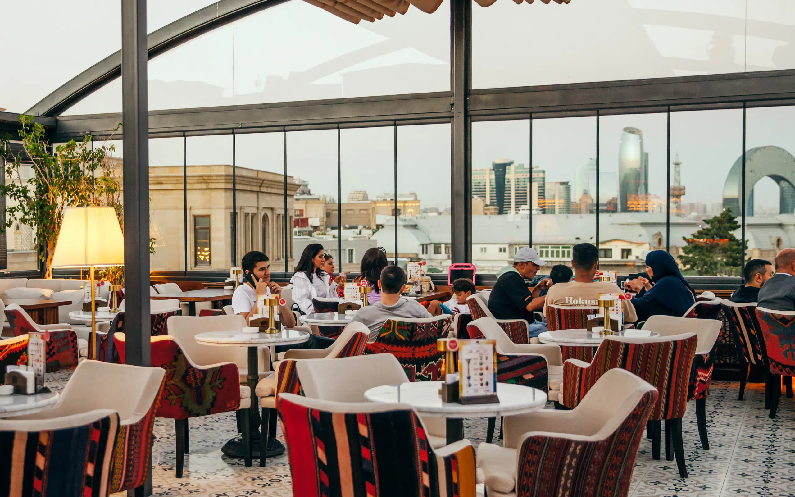 Terrace 145 restaurant is located on the third (top) floor, overlooking historical archeology sites and Maiden Tower inside the Inner City (Icheri Sheher), Caspian Sea and seaside park, skyscrapers of Port Baku, Crescent Bay, Flame Towers, huge venues of Deniz Mall, Crystal Hall, etc. It serves variety of national and international dishes and beverages together with the top quality premium shisha by 145 Group. Breakfast is served on the basis of set menu, with hot food options.